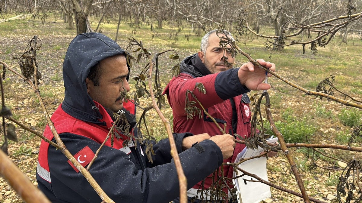 Bakanlık yetkilileri, don vuran bahçelerde ziyan incelemesi gerçekleştirdi.