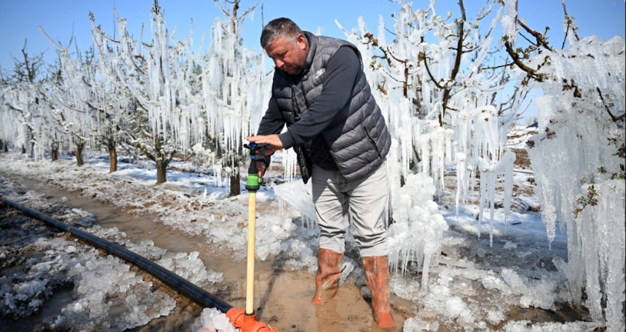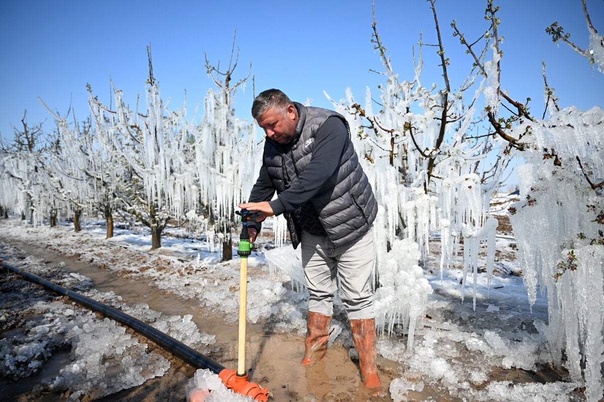 Çiftçiler, eserlerini zirai dona karşı ağaçların üzerinde oluşturulan buz katmanıyla müdafaaya çalıştı lakin bu süreç de başarılı olamadı.