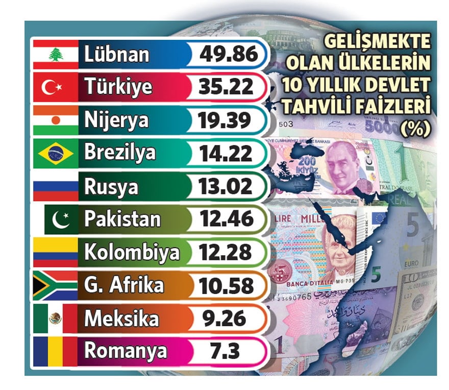 Ancak ekonomistler ve yatırım stratejistleri gösterge tahvillerde 5 yıl vadede yüzde 40, 10 yıl vadede yüzde 35 düzeylerinde bile alıcı olmadığına dikkat çekiyor. Türkiye, ‘fahiş’ denebilecek seviyeye ulaşan 10 yıllık devlet tahvili faizi ile Lübnan’dan sonra en yüksek faiz veren ülke oldu. 10 yıl vadeli sabit faizli devlet iç borçlanma senedinin (DİBS) birinci defa 2010 yılında ihraç edildiği hatırlatan finans uzmanı Prof. Dr. Hakkı Öztürk, rekor faiz düzeyine karşın Türkiye’nin yabancı yatırımcıyı cezbedemediğini söyledi. Öztürk, “10 yıl TL devlet tahvili faizi yüzde 35.36 ile tarihindeki en yüksek düzeyde. EM’de (gelişmekte olan ülkeler) mahallî para cinsinden Lübnan’dan sonra en yüksek faiz. Yani kabaca bu tahvili alıp vade sonuna kadar tutarsanız her yıl yüzde 35.36 getiri var ancak yabancı sattı ve almıyor. Yılbaşından beri yabancılar 5.1 milyar dolar DİBS satmış ve yabancı hissesi yüzde 7.8” dedi.