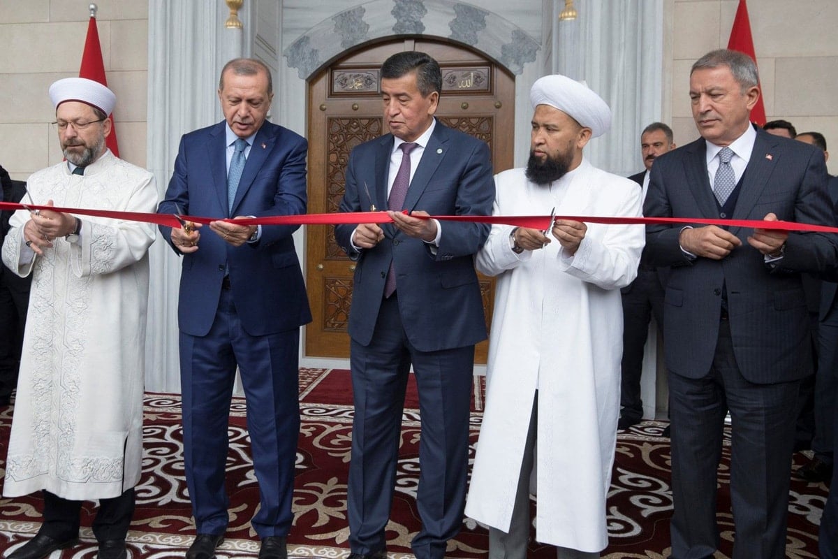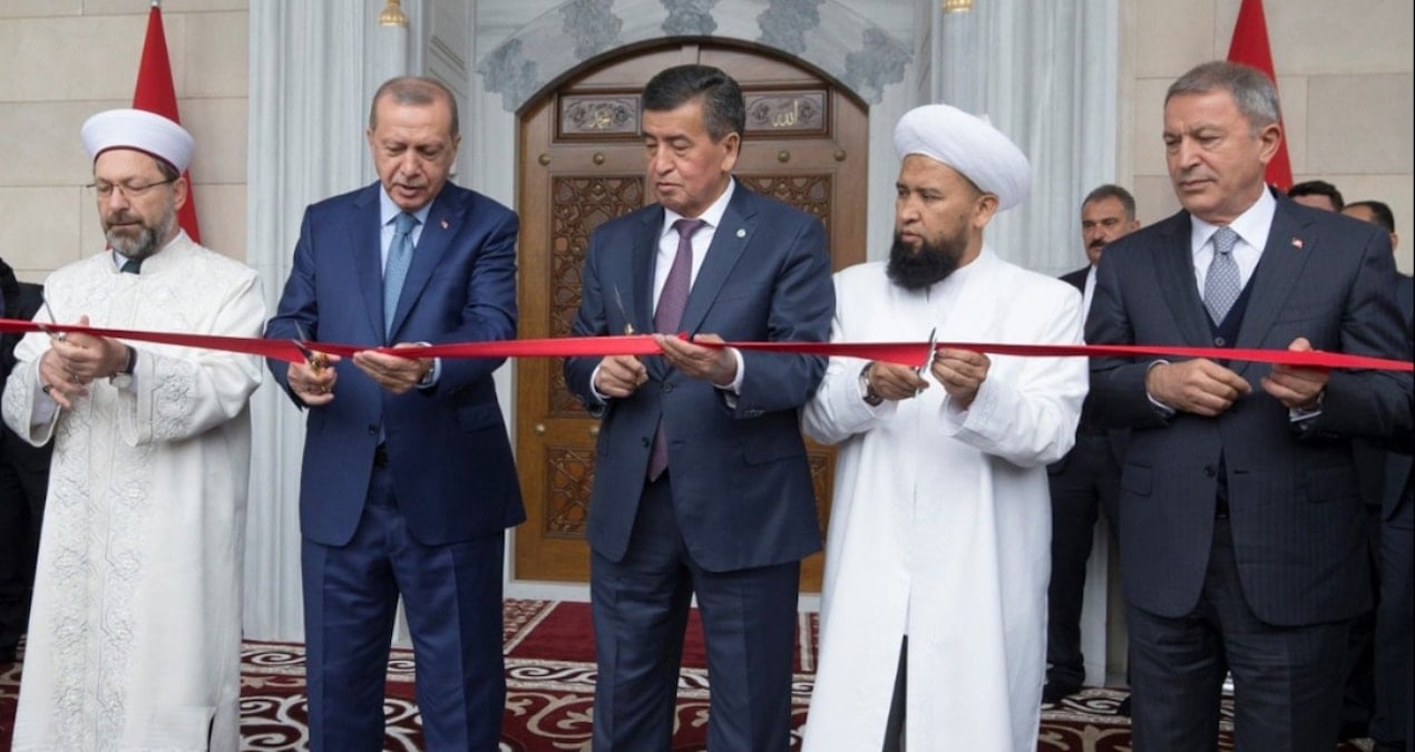 Diyanet Vakfı’nın Bişkek’te yaptırdığı cami 35 milyon dolara mal oldu. 2 Eylül 2018’deki açılışa Erdoğan ve Diyanet İşleri Başkanı Ali Erbaş katıldı.