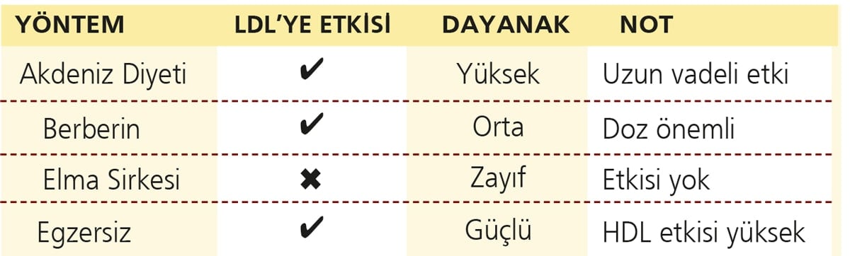 Ancak LDL 190 mg/dL üzerindeyse ya da öbür risk faktörleri varsa, tek başına bitkisel prosedürler yetersiz kalabilir.