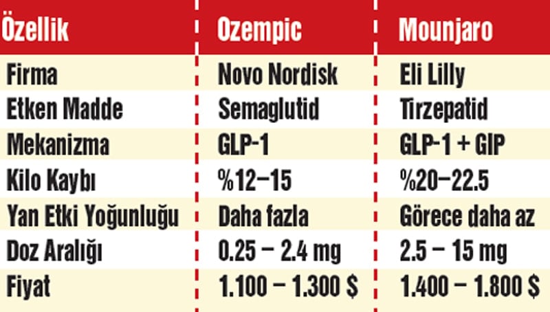 – Mounjaro (tirzepatid) ABD’de aylık 1.300-1.400 dolar