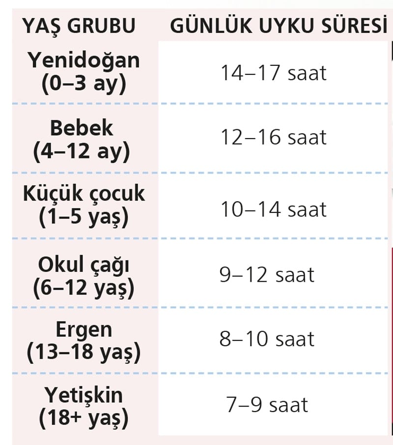 Yaşa nazaran ülkü uyku mühleti kaç saat?