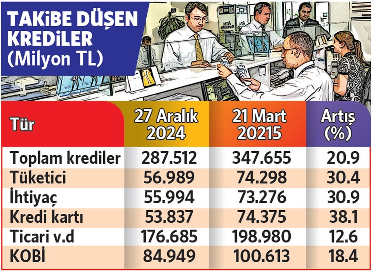 Yılın başından bu yana ödenemediği için bankaların takibine düşen ticari ve ferdi krediler ile kredi kartı batağında değerli seviyede artış yaşandı.